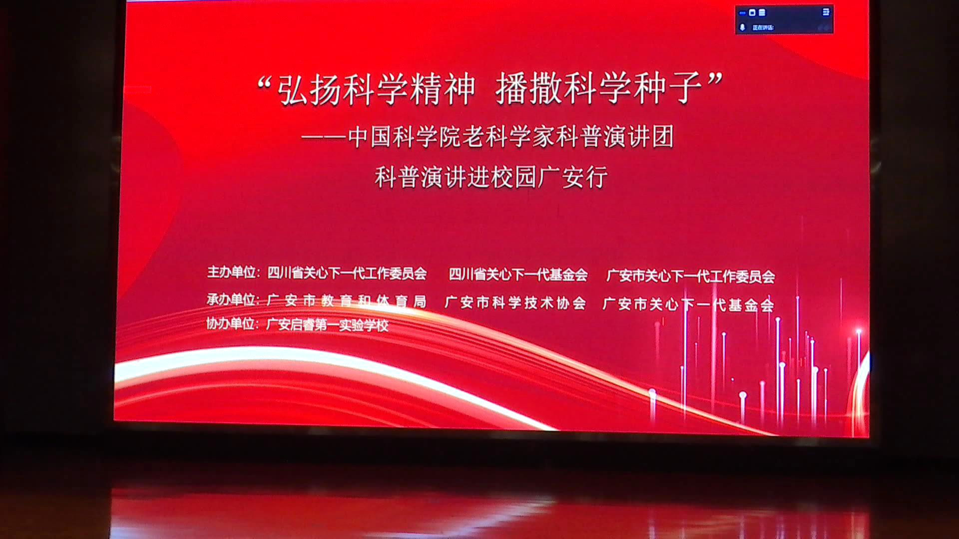 “十分高兴能够开展这次科普宣讲,这是我第二次来到岳池,我很希望岳池的学子们将来能够成为国家未来科技发展的中坚骨干,既为国家做出贡献,也为岳池的发展做出贡献。”中国科学院老科学家科普演讲团副团长、中国科学院空天信息创新研究院研究员刘定生教授表示。(岳池融媒记者 祝圣坤)